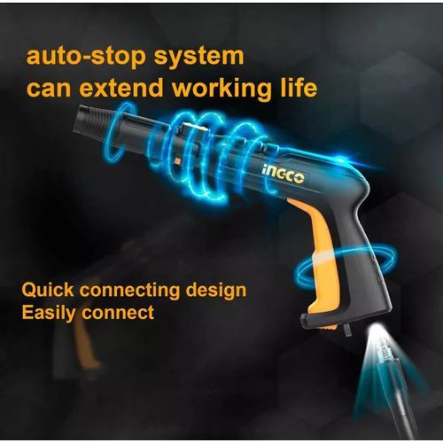 INGCO tools are devoted to making professional quality tools affordable. INGCO believes that top quality refers to not only function, usability and appearance, but also efficiency, performance and maintainability. The whole INGCO team pay great attention to every detail to make INGCO tools stand on the top of the world. All the INGCO team are based in China to support the global marketing. We focus on finding partners overseas instead of setting up our own sales team. Rather than making much advertisement, we prefer to save all extra expense to maximize the benefits to partners. INGCO—Make The World In Your HandsVoltage 220-240V~50HzInput power 1200WMaximum Pressure 90BarFlow rate 5.5L/minCopper wire motorAuto stop systemAccessories1 x Pressure gun1 x 3m high pressure hose1 x Pressure lance