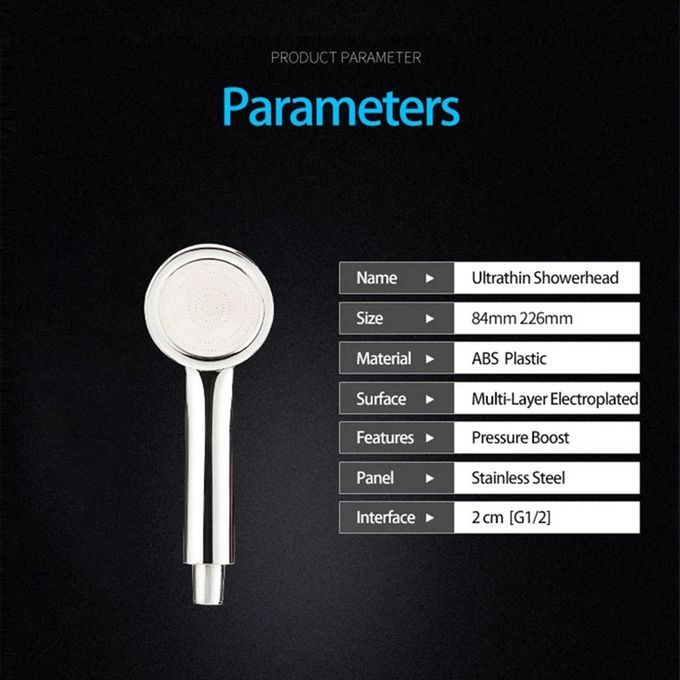 Spe ifi ations: Material: ABS Plasti Panel: Stainless Steel Pro ess: Ele troplating Nominal pressure: normal pressure Style: modern and ple Installation type: hanging Size: 84*226mm Interfa e: 2 m (G1/2)