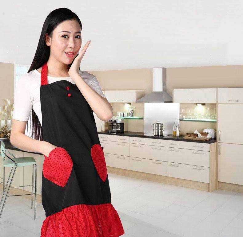 Cute Double Love Pocket Aprons Women Housewife Kitchen Cook New Tool Kitchen Waterproof Aprons