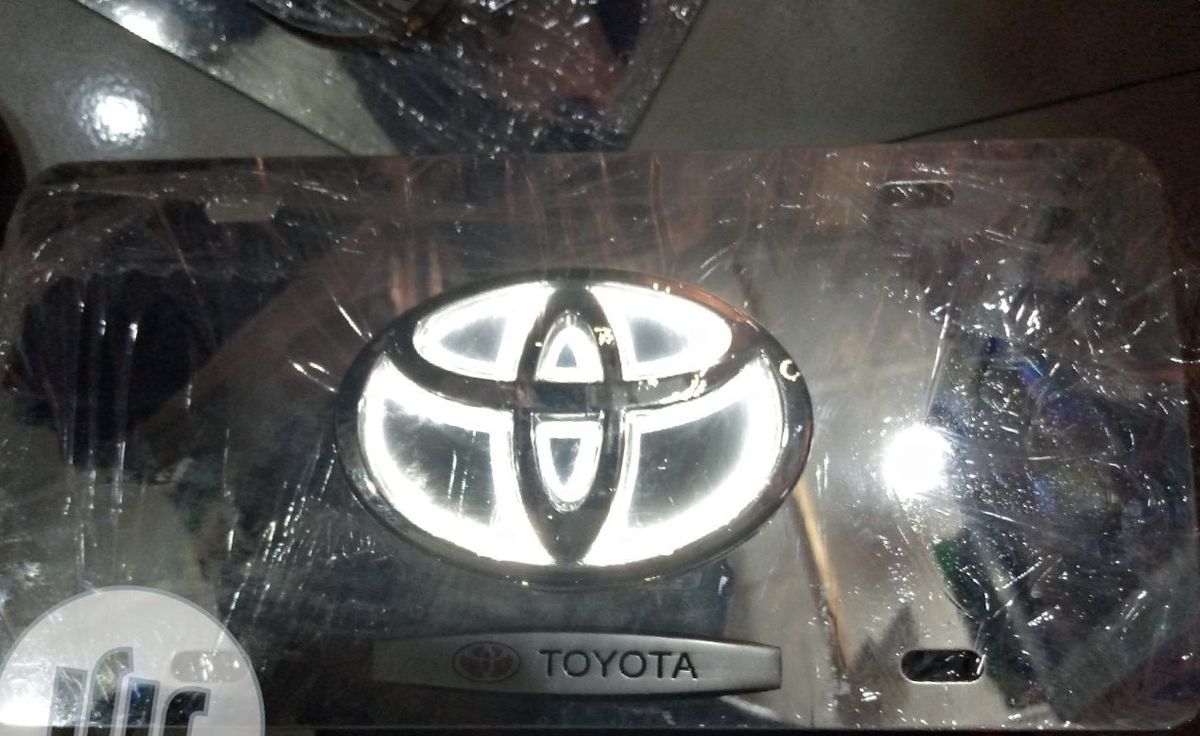 This is a silver colored LED display full plate number cover for all toyota model, it's a full plate number cover that completely covers plate number, it's made from high quality metal material with anti rust property, it has LED display light. it has a shining sparkling look that adds beauty and class to your car exterior.
