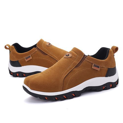 Buy High-quality Men Hiking Shoes Big Size 39-48 Suede Leather Slip On Sneakers Anti-Slip Outdoor Trekking Travel Footwear Mountain Shoes Brown in Nigeria