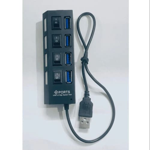 USB Ports: 4 LED Indication: Blue(Power) Cable: About 25~35 cm Size: 104*37*24mm Date Transfer Rate: Upto 5Gbps Color: Black/White Compatible: Windows 2000/XP/Vista/Win 7,Linux and MAC OS 9.1 or higher