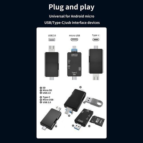 Specification:Color: BlackMaterial: ABS Environmental Protection MaterialHardware Support: Mobile Phone, for Macbook (USB Type C), Laptop, Daily ComputerCompatible With Multiple Systems: Support Micro / USB / Type-C / TFProduct presentation:USB2.0 male + MICRO male + Type-C male, speedily read TF memory cards, external keyboard with USB male interfaces, mice, USB flash disks, USB Shields, gamepads and other USB devices.Support equipment: mobile phones,laptops, common computersCompatible With Multi-systems: supports Micro / Usb / Type-c / TF