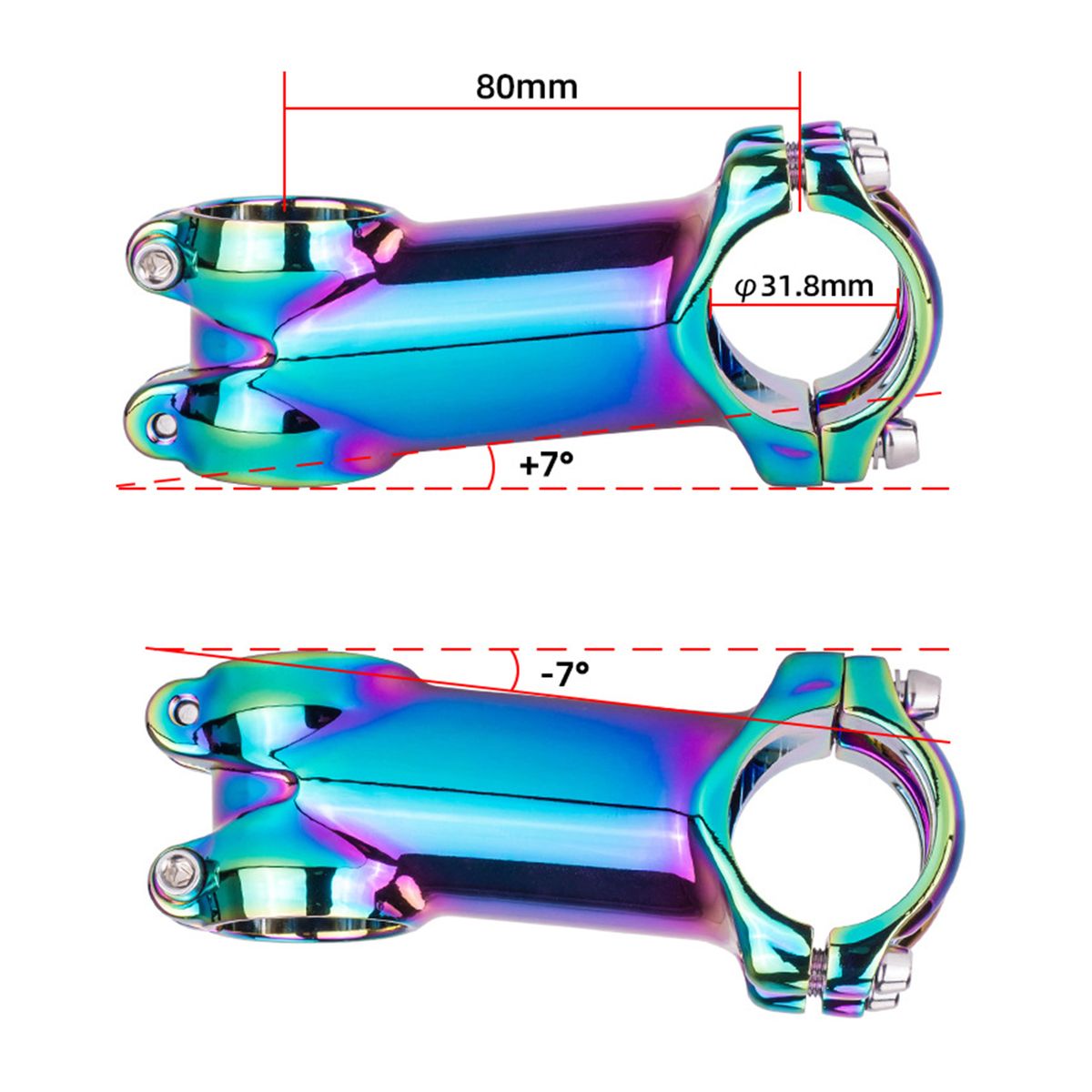 Handlebar diameter : 31.8mm (1-1/4"), - degree choose, Stereer Tube diameter: 28.6mm (1-1/8"), Length: 60mm 70mm 80mm 90mm (center distance of the two holes).