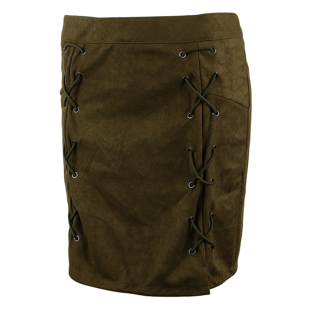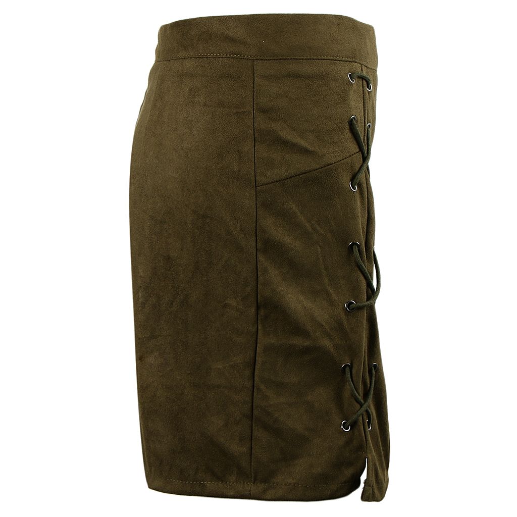 Features: slim mini skirt, lace up, high waist and bodycon
