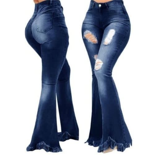 Buy High Waist Tassel Flare Jean - Dark Blue in Nigeria