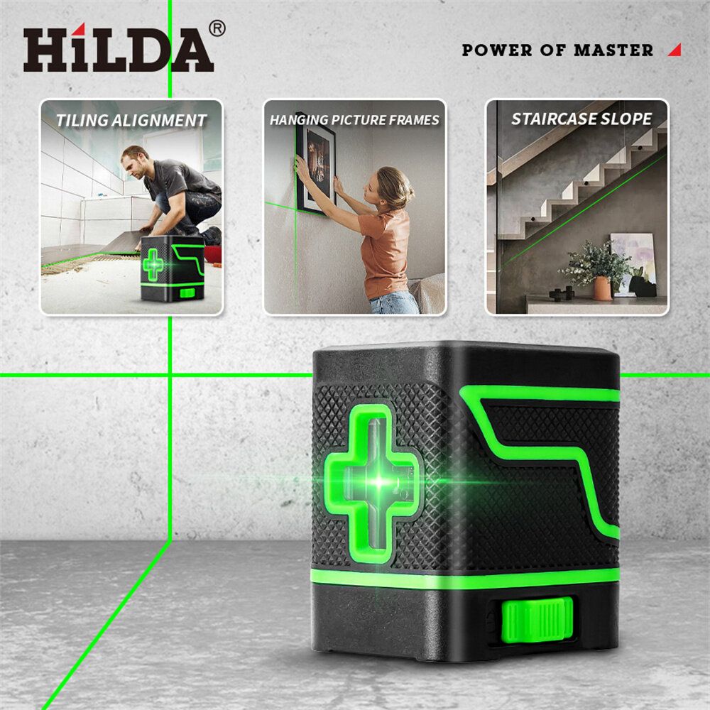?The laser level meter can emit visible laser horizontal and vertical lines for the automatic leveling separately or simultaneously. Provides accurate horizontal and vertical datum for indoor construction stakeout and calibration, easy to operate, and versatile. Suitable for flooring tile layout, paneling, wallpapering, stenciling, wainscoting, finish carpentry, wall stud layout and partition installation. You can have a try.Features:Compact size, lightweight and portable, easy to carry with the case, providing quick and convenient mobility and storage.Adopts optical glass, fine transmission, with clear laser light.Output 2 laser lines separately or simultaneously for finer positioning.2 levles of brightness of laser lines adjustable, you can easy to adjust according it to your demands.Equipped with self-test calibration function, le;4 deg; automatic leveling, but if the angle is over 4 deg;, the laser light will keep blinking to reminding you to reset them on a flat ground.Push button design, push left to open it, push right to close it.One button design, with high sensitive to switch the line mode quickly, and with comfortable hand feeling.Drop resistance, anti-vibration with multiple protections.Waterproof and dustproof, suitable for both indoor and outdoor use.The T-shape bracket with 7mm wall mounted distance, which has 360 deg; rotatable base, and equipped with fine adjustment mechanism, can make the machine quickly find the target(1/4\\\' screw size).Suitable for flooring tile layout, paneling, wallpapering, stenciling, wainscoting, finish carpentry, wall stud layout and partition installation.Specifications:Name: Laser LevelMaterial: ABSBattery: 2 * AA battery (not included)Laser wavelength: green light 635nmSelf-levelling-range: plusmn;4 deg;Working distance: 25mWorking temperature: -5℃ to 50℃Packing included: