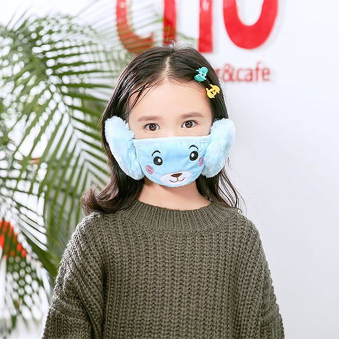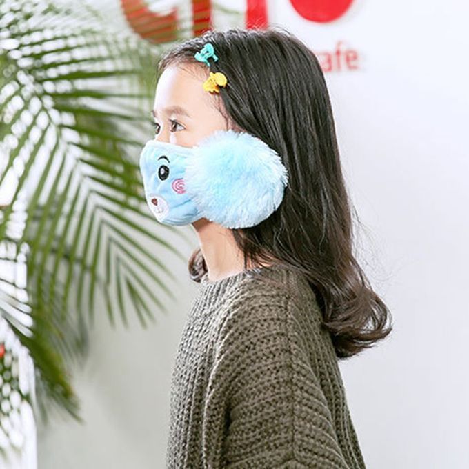 Hildren'S Artoon Ute Ear Prote Tion S Plush Bear Student S Two-In-One Warm Dust-Proof -blue