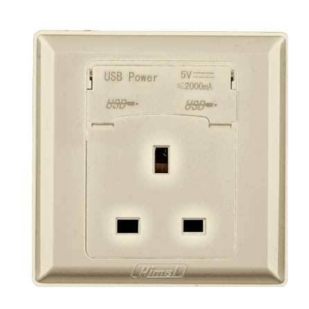 Buy Himel Socket, Advanced Series, 13 A, 1 Gang, With 2 Usb 2.1 A, Gold || HWDA13USBG in Nigeria