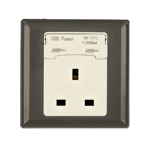 Buy Himel Socket, Advanced Series, 13 A, 250 V Ac, 1 Gang, With 2 Usb 2.1 A, Brown || HWDA13USBB in Nigeria