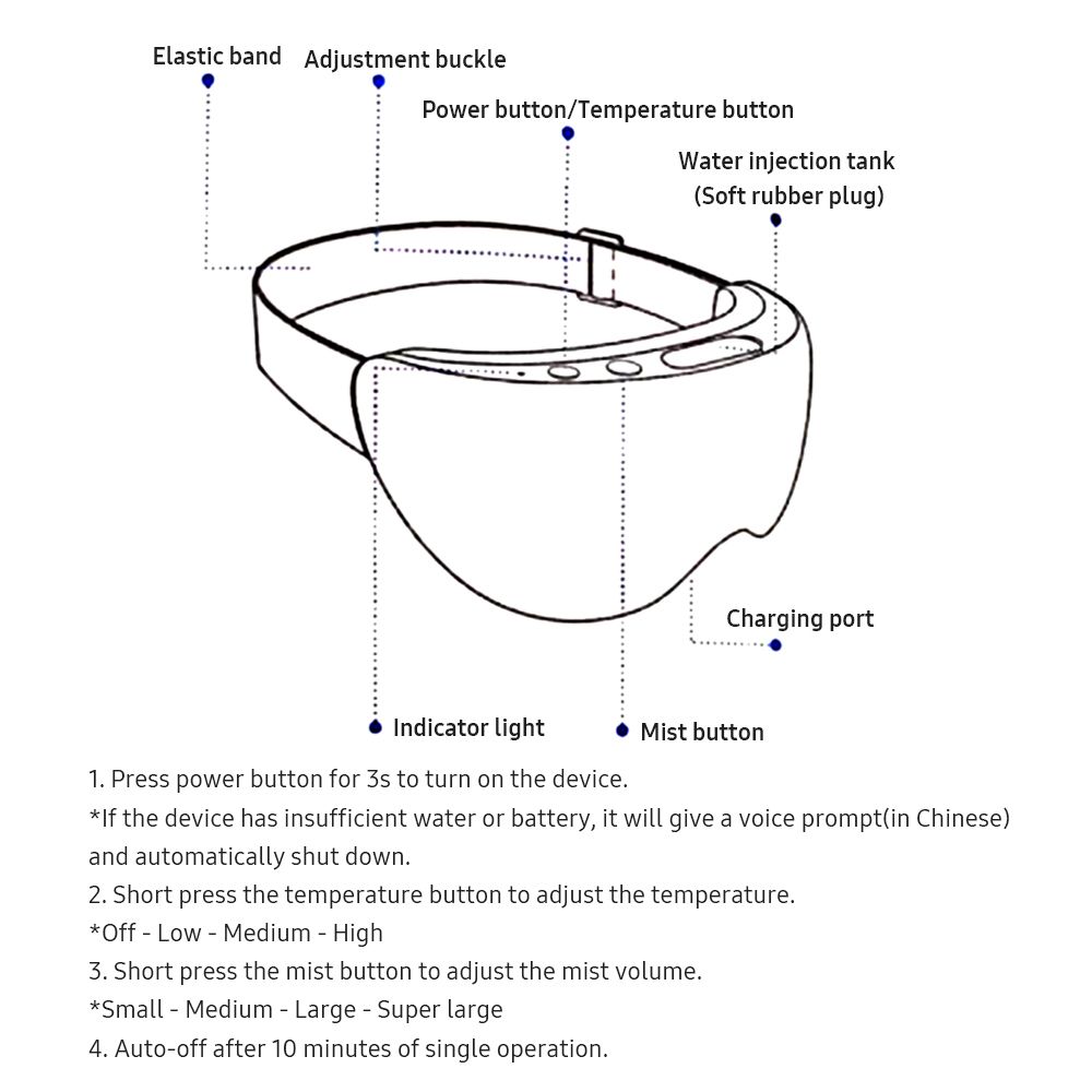 *If the device has insufficient water or battery, it will give a voice prompt(in Chinese) and automatically shut down.