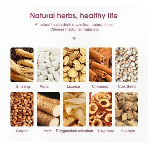 IngredientsGinseng extract, maca root extract, kudzu root, papaya, so isoflavonesCinnamon, tangerine peel, dandelion.