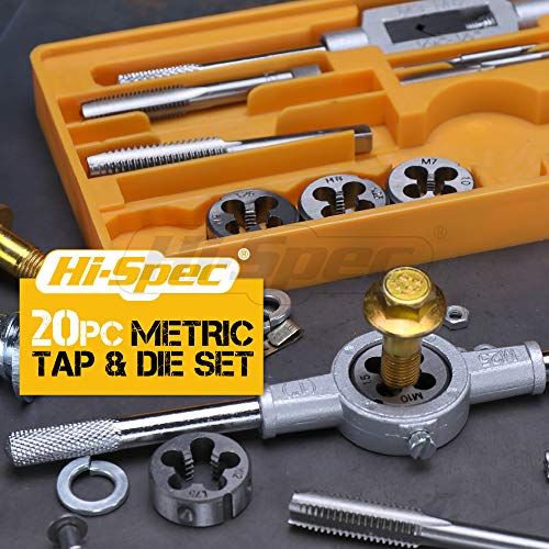 - CLEAN CUT RESULTS: Start DIY garage and workshop tapping and threading with the Hi-Spe 20 Piee Metri Tap and Die Tool Set. Whether its internal or external rethreading, ut new material, hase damaged or old srews, repair rusty nuts, bolts and spark plugs