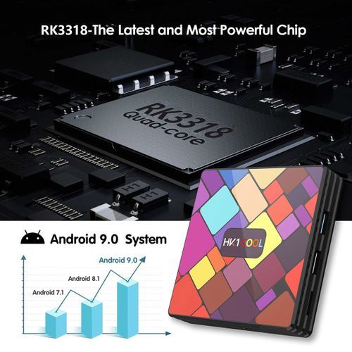 HK1COOL 4K UHD Smart TV Box with Remote Controller, Android 9.0 RK3318 Quad-core Cortex-A53, 4GB+128GB, Support WiFi & BT & AV & HDMI & RJ45 & TF Card