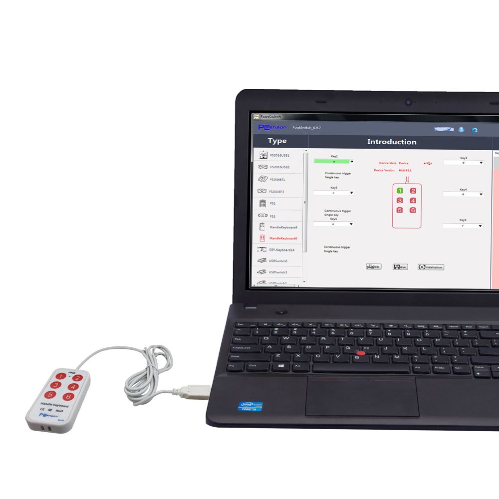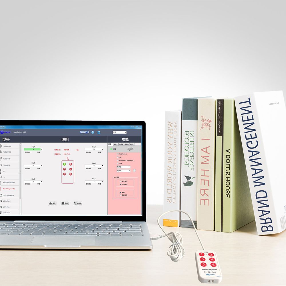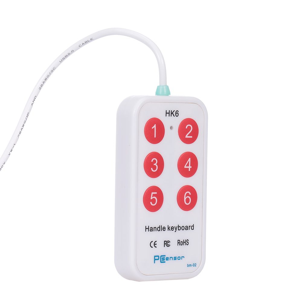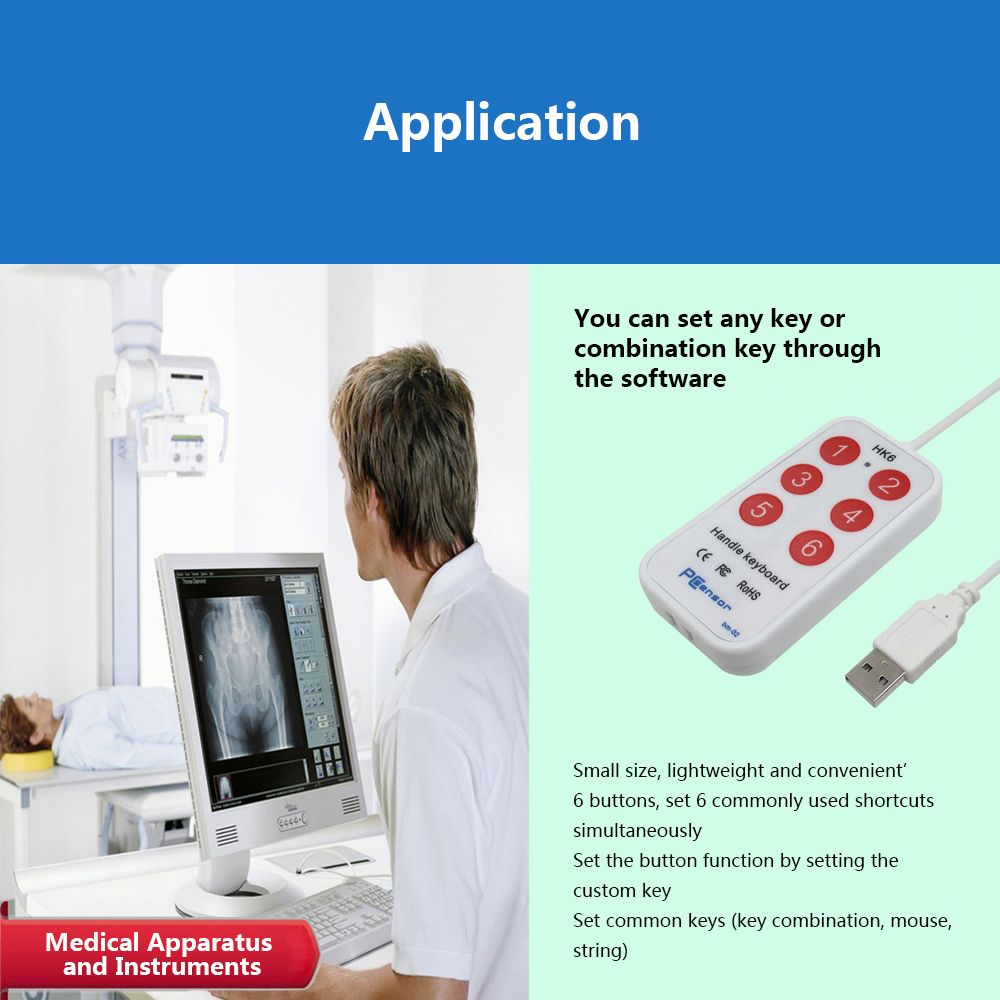This is a handle USB keyboard. 6 buttons design, supports custom button settings. Sets up 6 shortcuts, USB interface, plug and play, convenient and fast to use. Widely used in playing games, controlling instruments, image acquisition, multimedia teaching, epidemic prevention station, etc.