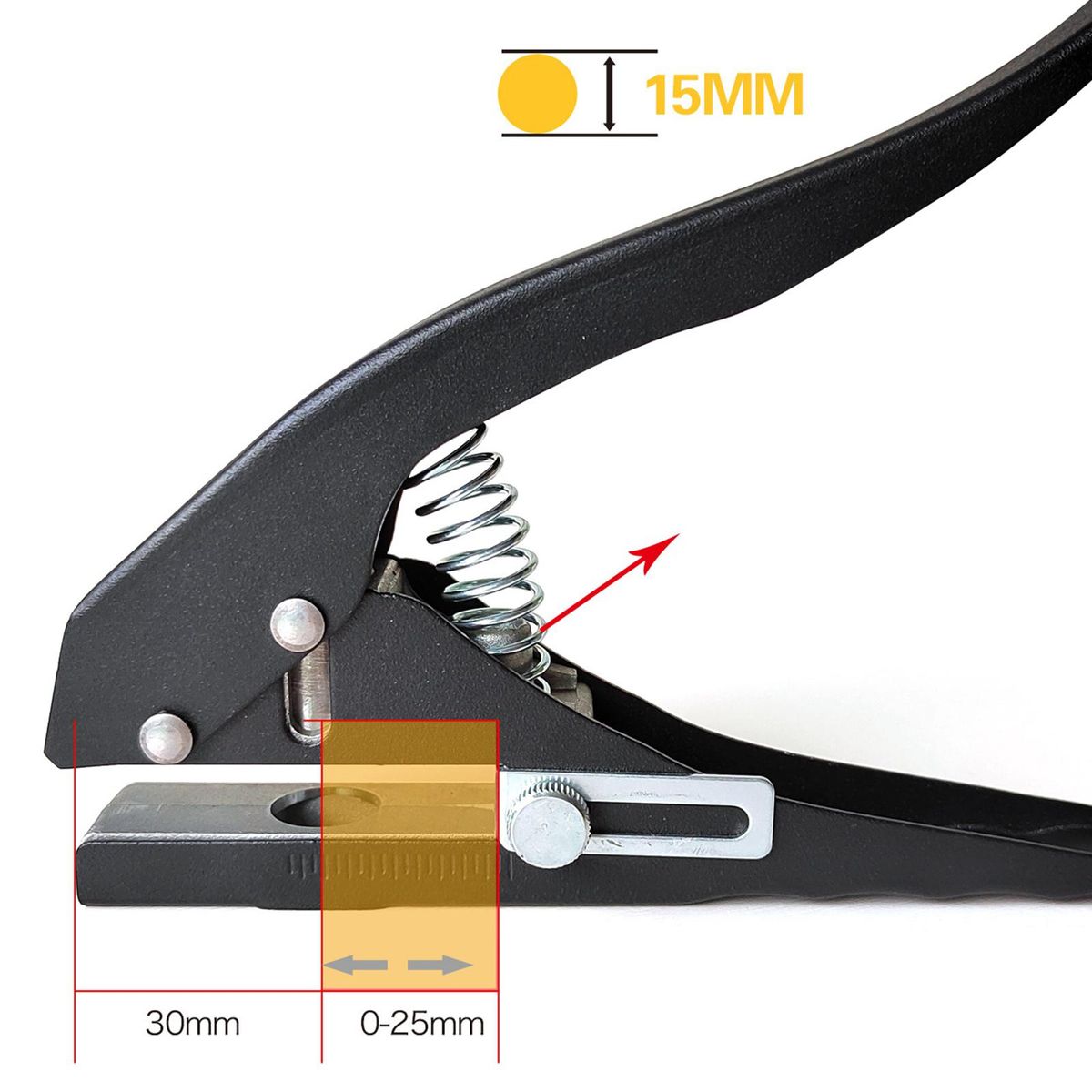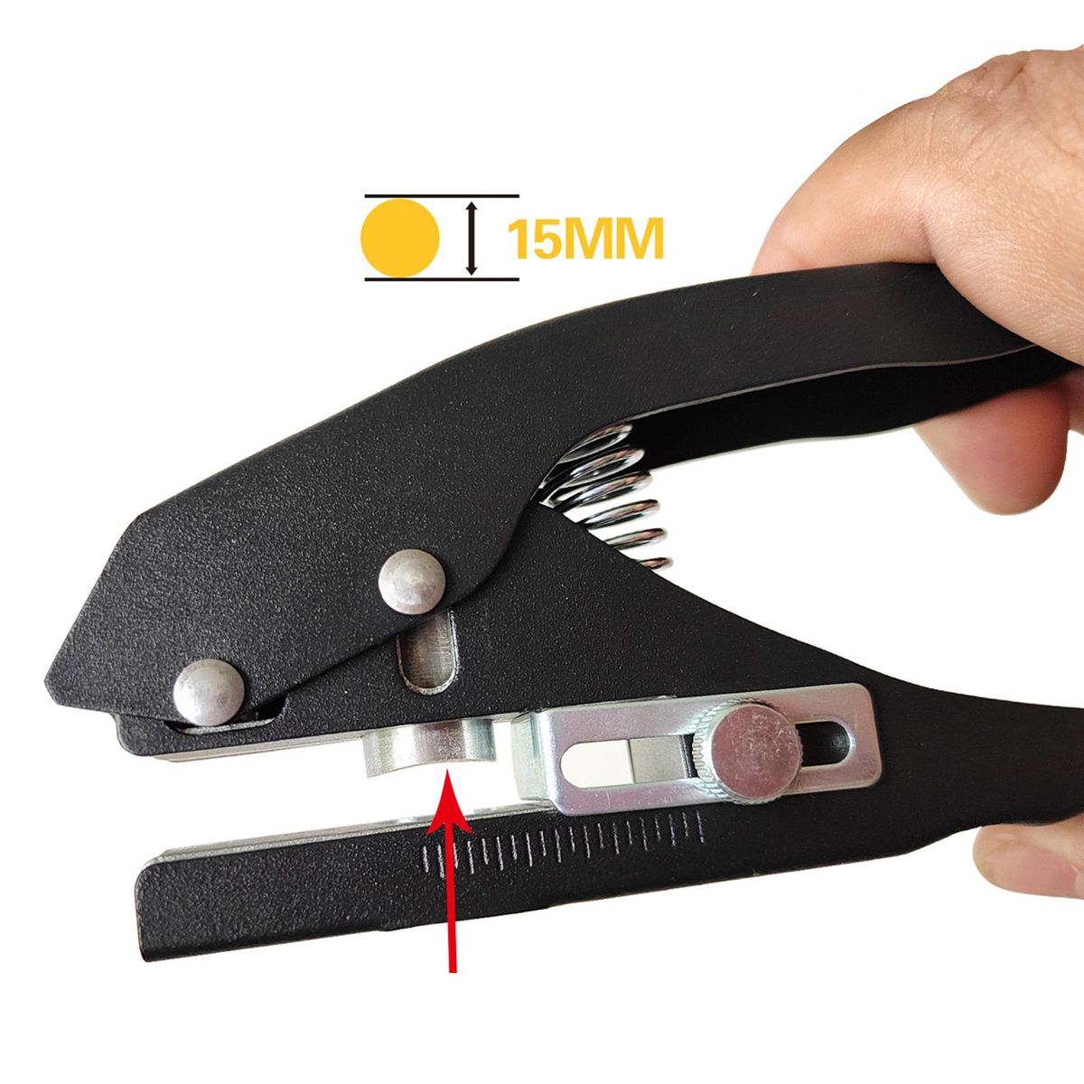 DURABLE: Made of metal material, heavy duty and durable design for long term use.punching pliers woodworking tools, using the lever principle, you can complete the using by same hand.WIDE USAGE: Suit for Edge banding, VIP card, paper, cardboard, hard film and thin etc.3 IN1 LARGE HOLE PLIERS FOR EDGE BANDING: Punching 15mm holes easily without deformation. The scale fixes the hole position, the hole position can be seen, and the disc is intact without deformation.ADJUSTABLE SCALE: Freely control the drilling depth and precise drilling position HIGH STRENGTH SPRING: Not easily damaged, not broken, equipped with a replacement spring.