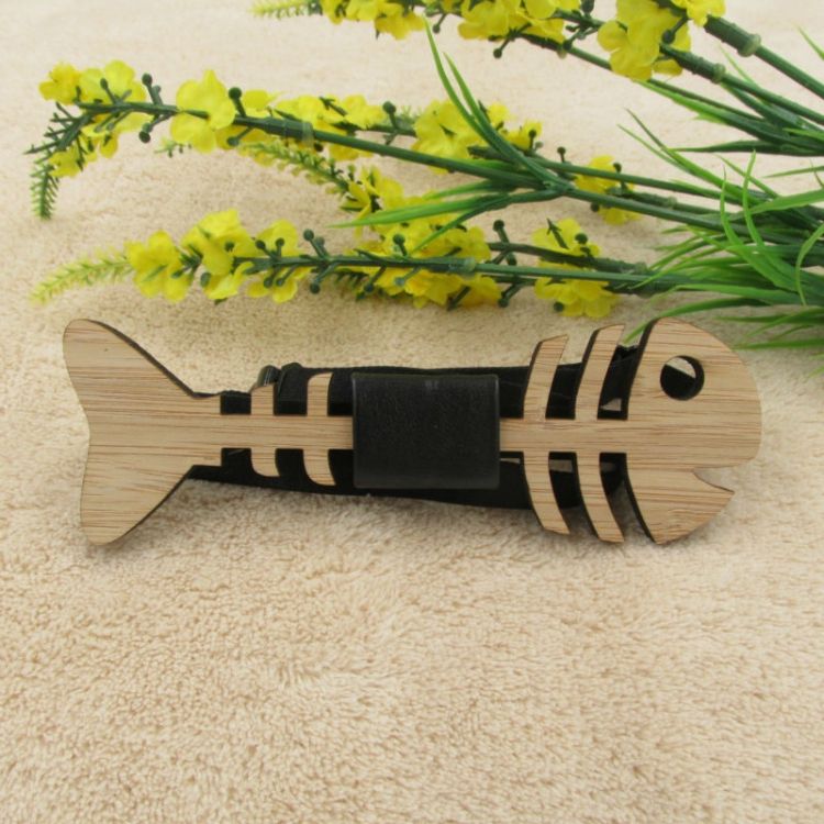 Hollow Fish Bone Shape Bamboo Wooden Bow Tie for Men