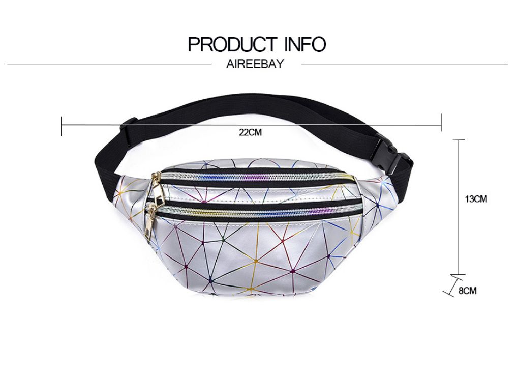 Item Type: Waist PacksModel Number: ZJ190301WPMain Material: PUGender: UnisexShape: PillowStyle: FashionMaterial Composition: Laser PUPattern Type: GeometricItem Length: 22cm