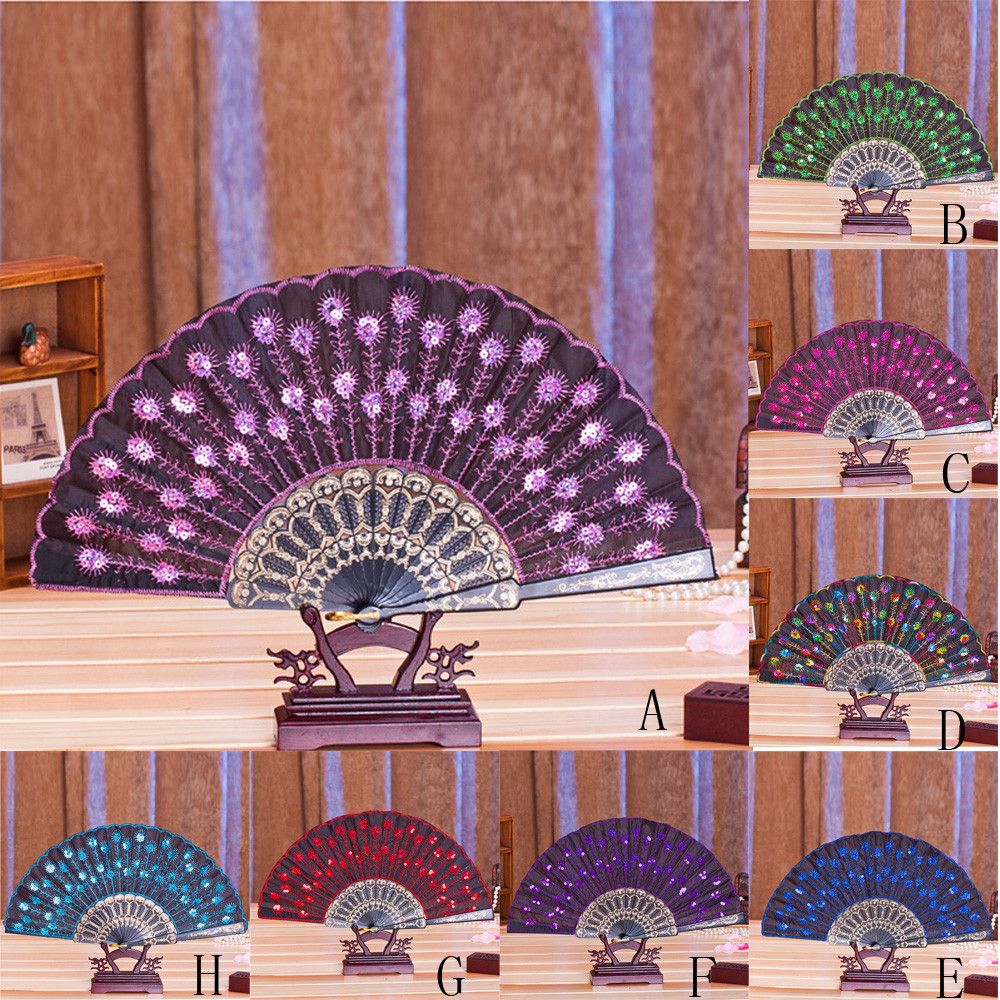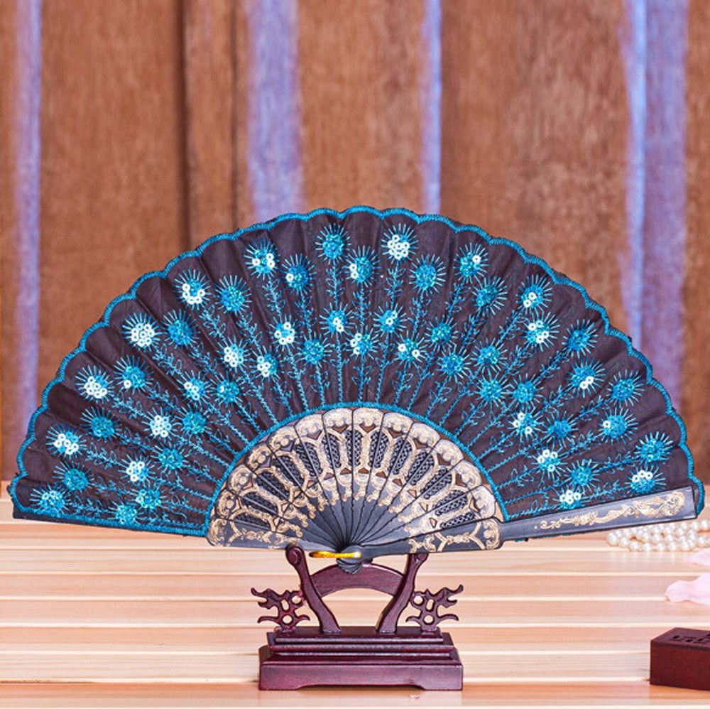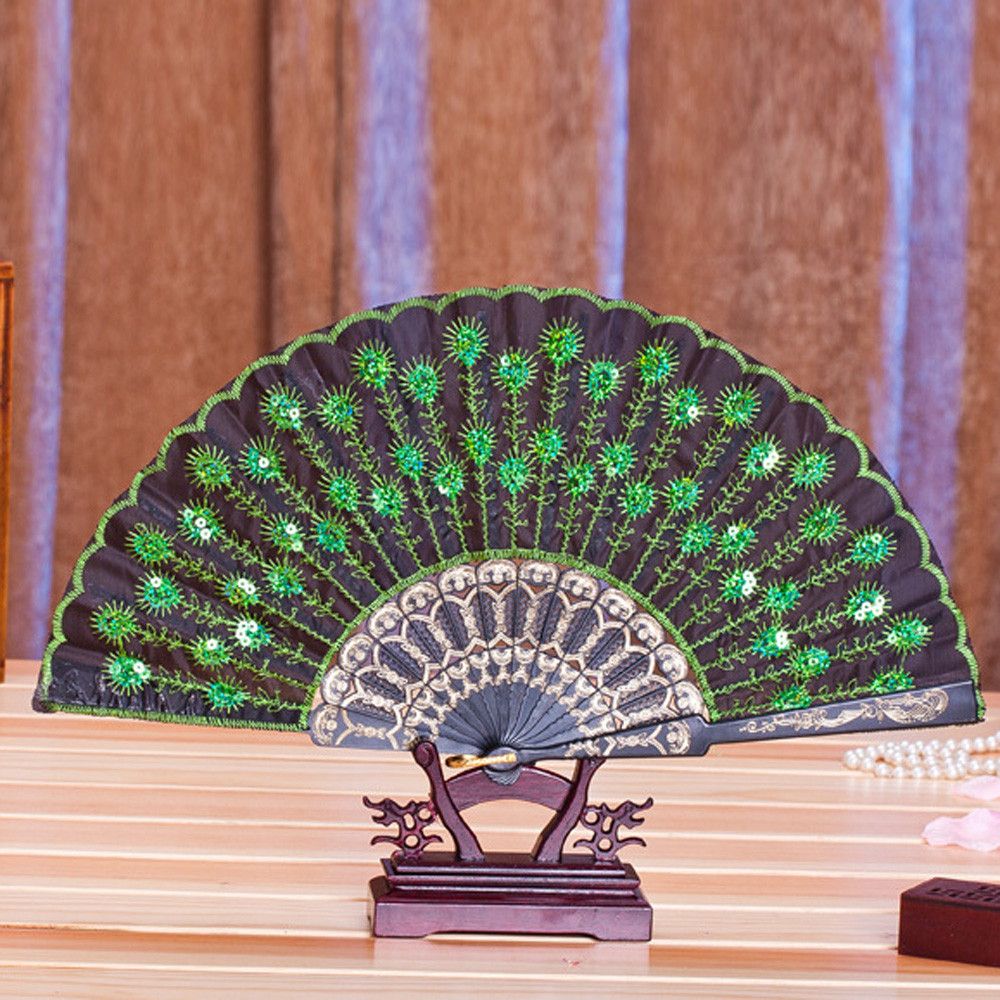 Buy Home Accessory Decor Peacock Hand Bone Carved Crafts Fan Art Embroidery @D Sequins Print Folding Summer Fan Plastic Tail Feather in Nigeria