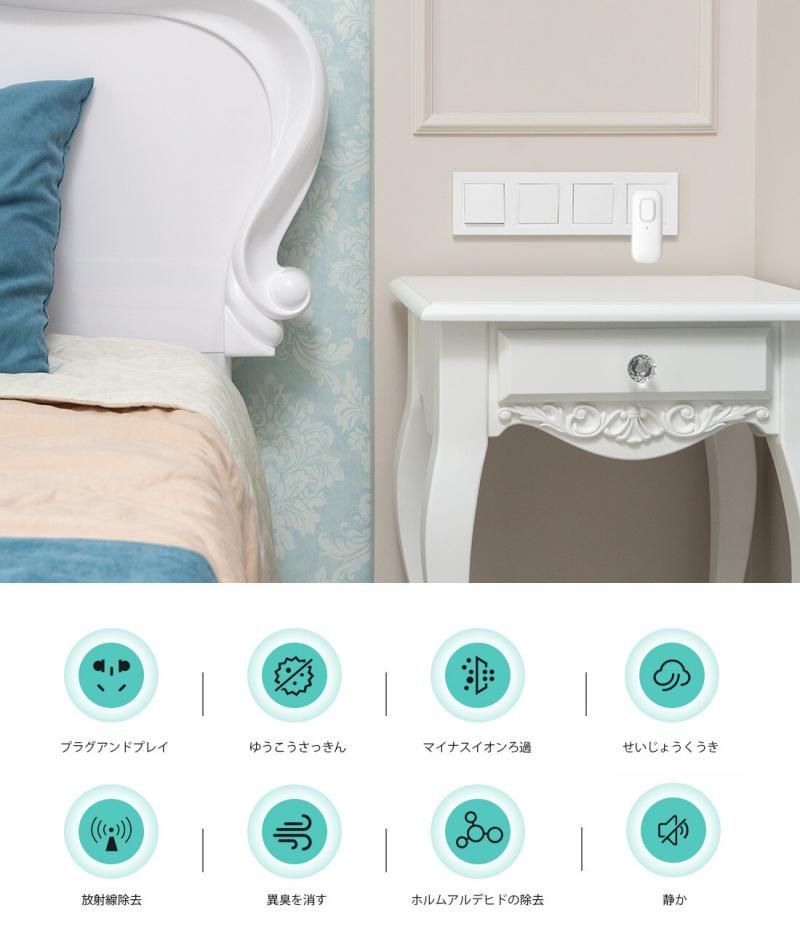 Our air purifier stays quiet while working by releasing 30 million ions, fit for mothers and children, bringing you an enjoyable sleep time, and uses plug in power supply, low power consumption, safe and comfortable to use.