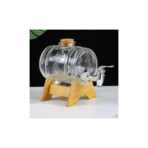 Home Barware Novelty Lead Glass Wine Barrel Shaped Decanter With Wooden Support-Decanters