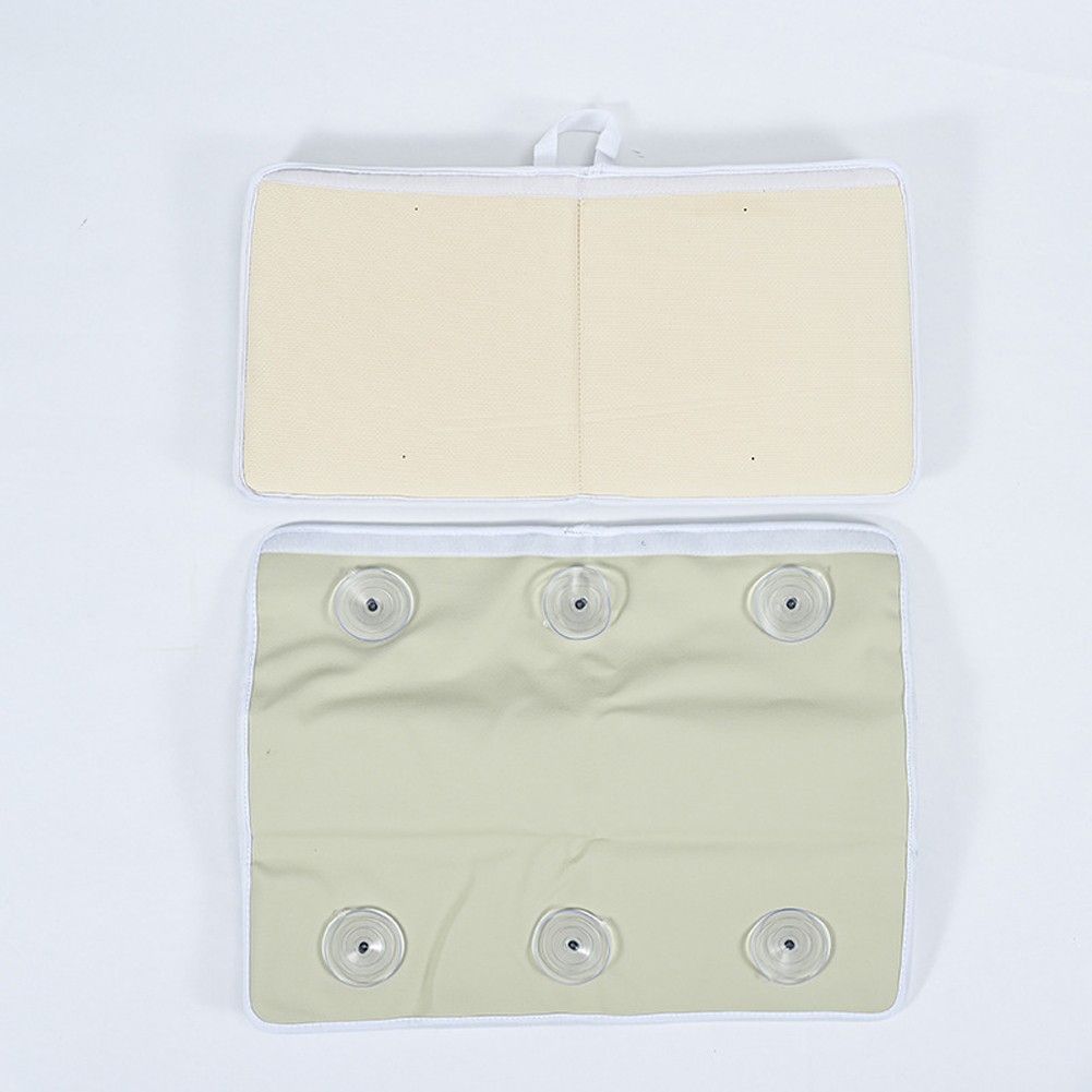 The material is soft and practical. The bath kneeler can be put into the washing machine for cleaning. When you finish cleaning, you can hung it up and dry it again.