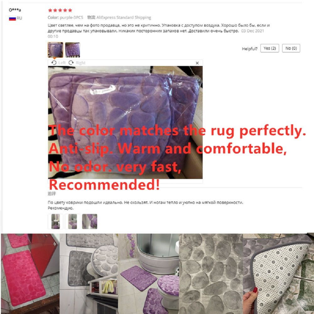 3pcs/set bathroom mat set flannel Toilet lid cover Anti-slip washable tappet banheiro fleeceusing flannel + sponge, thick villi, anti-skid water absorption, not easy to lose hair, comfortableSt the bottom, plum point plastic anti=skid design, anti skid, wear resistant, and do not hurt the floorthe products uses hemming, so that the edge is more solid, wear resistant, and prolong the life of floor mats.