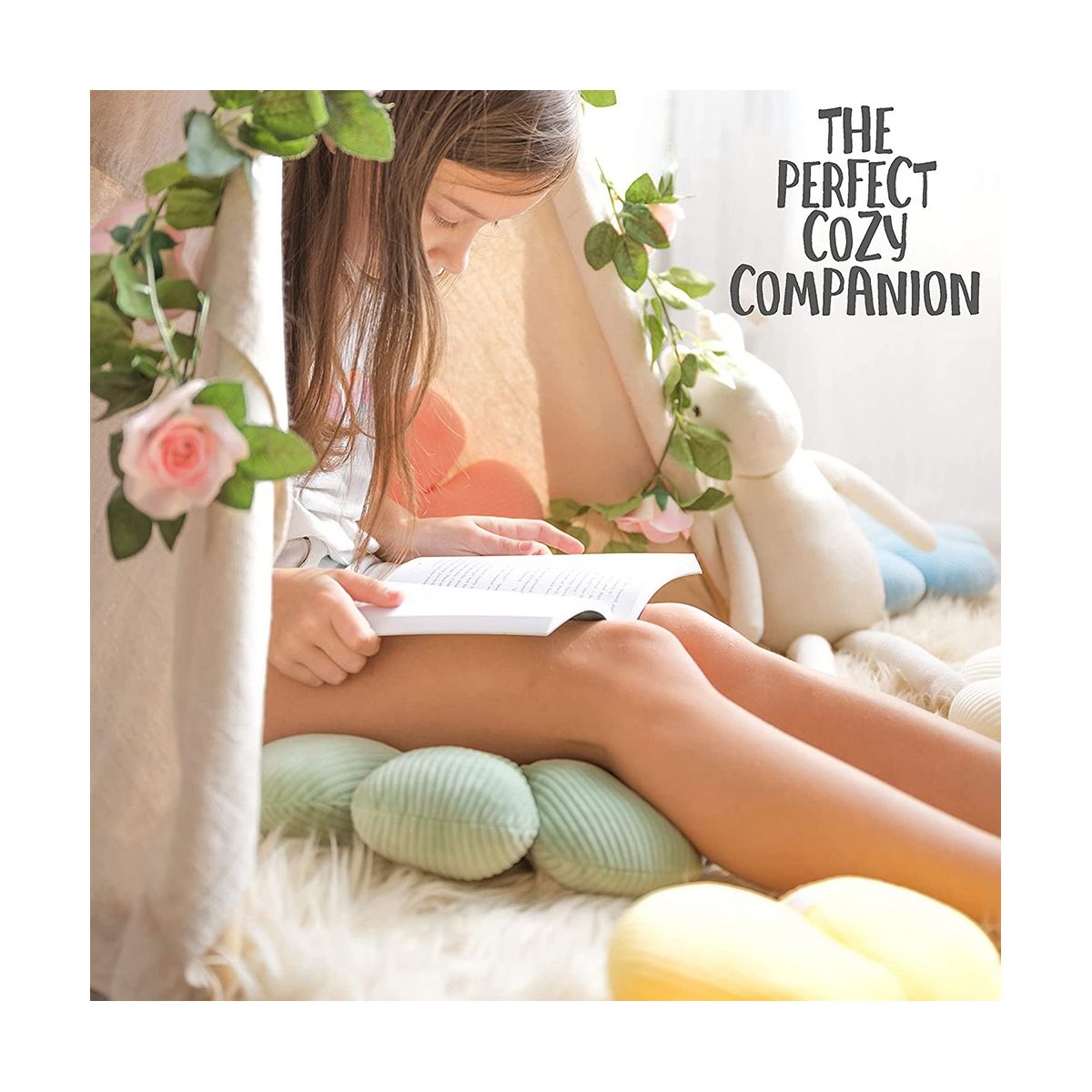 {Premium Plush and Fabric} We mentioned that our flower plush pillow is huggable - that's because the flower cushion is stuffed with premium material, encased with ultra-soft covering made from fine and delicate fabric. This flower shaped pillow adds character and comfort no matter where you put it!