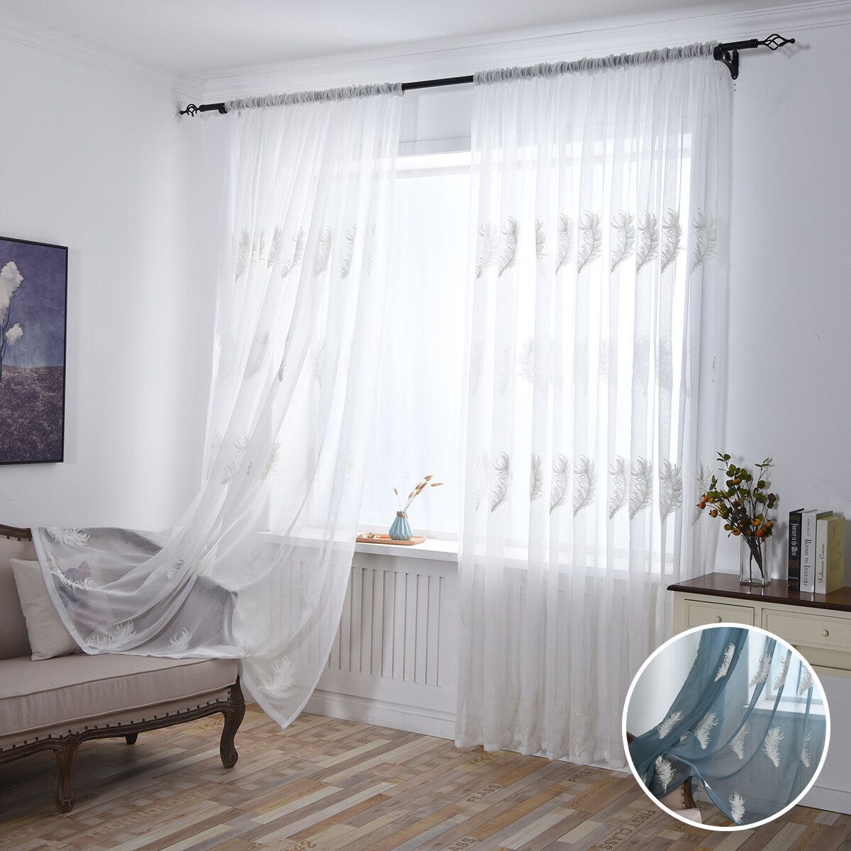 Similar Items Description Elegant White/Blue Feather Design Tulle Curtains for Living Room The Bedroom Curtain Cotton Linen Kithcen Cortina Home Decor