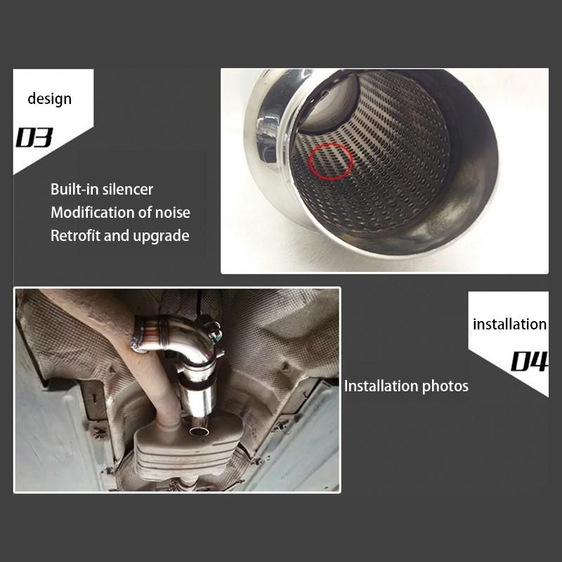 Stainless Steel Car Exhaust Downpipe Branch Sound Tuning Muffler Pipe 51mm