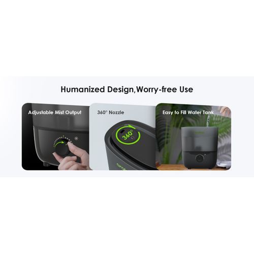 Product Features:Adjustable Mist Output ,360° Nozzle & Top-fill Design-Humanized Design, Worry-free Use