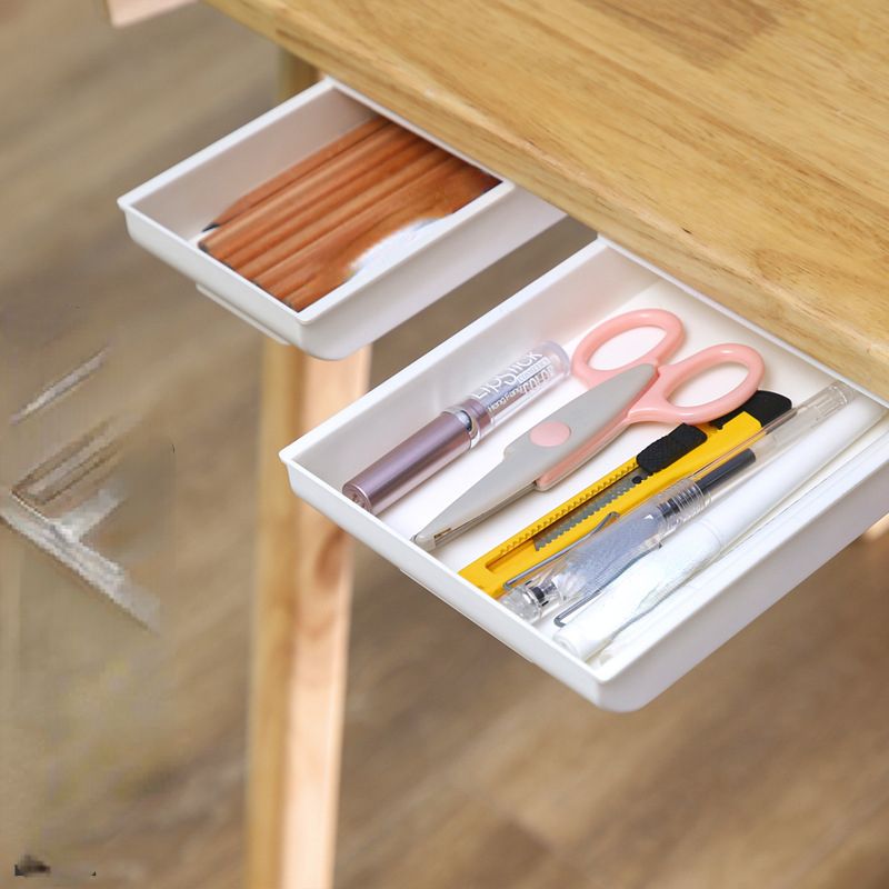 1X Home Organizer Box Drawer Storage Box Self Stick Pencil Tray Stand for Pens Under Desk Storage Drawer Hidden Table Drawer Box