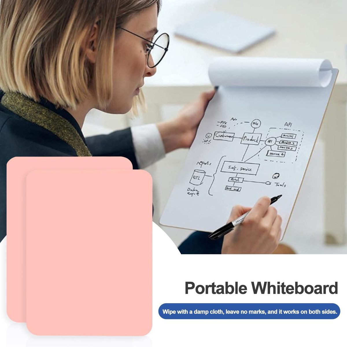 Our portable whiteboard, the perfect tool for all your writing and advertising needs. this versatile whiteboard is designed to be easily wiped clean with a damp cloth, leaving no marks behind. it is also reversible, allowing you to maximize your writing space and get the most out of your investment.