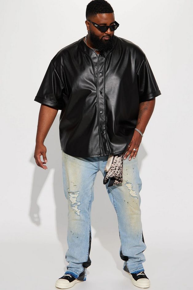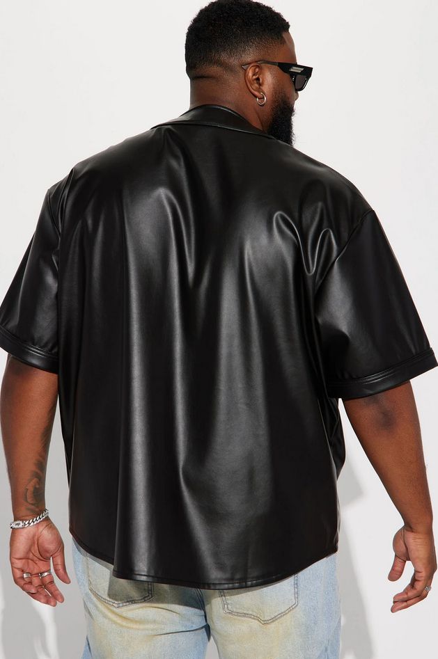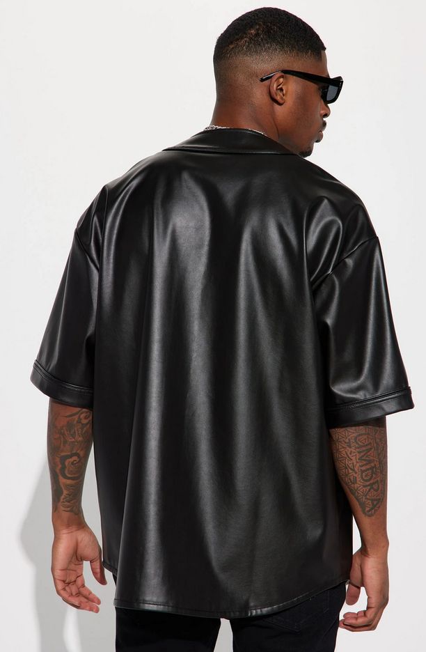 Jersey in Black. Elevate your style with this sleek and modern jersey, crafted with premium faux leather for a touch of luxury. Perfect for any occasion, this short sleeve jersey combines comfort and sophistication effortlessly. Experience the winning combination of