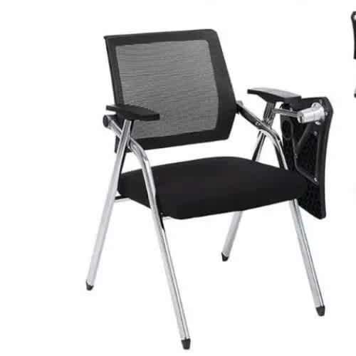 Home Office Chair With Writing PadThis Foldable Seminar Training Chair is very compact, comfortable, durable and lightweight. It has a stainless steel frame which perfectly folds for easy storage and a soft padded cushioning for extra comfort. This foldable chair is designed to be resistant to corrosion, and it is suitable for both indoor and outdoor use. Highlights Reclining Foldable Fashionable and durable Detachable Cushioned, Easy open, easy carrying, easy assembly Ideal for both indoor and outdoor use Extra padding in seat and back for more comfort Soft comfortable arm rests with cup holder Material: Metal frame & Leather For Seminar conference, meeting and training.its also fold-able and easy to move.