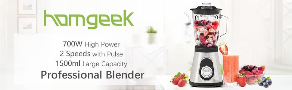 Buy homgeek Smoothie Blender, 750W Countertop Blender with 2 Adjustable Speeds & Pulse Function, Kitchen Blender with 48oz Tritan Glass Pitcher for Shakes, Smoothies, Ice Crushing and Frozening Fruits in Nigeria