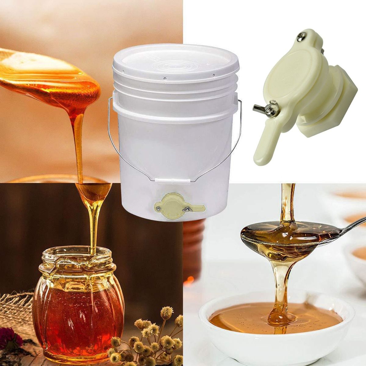 Honey tap tool for extracting honey or other food in bottles and buckets.