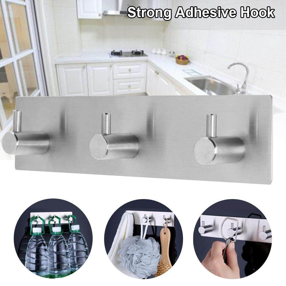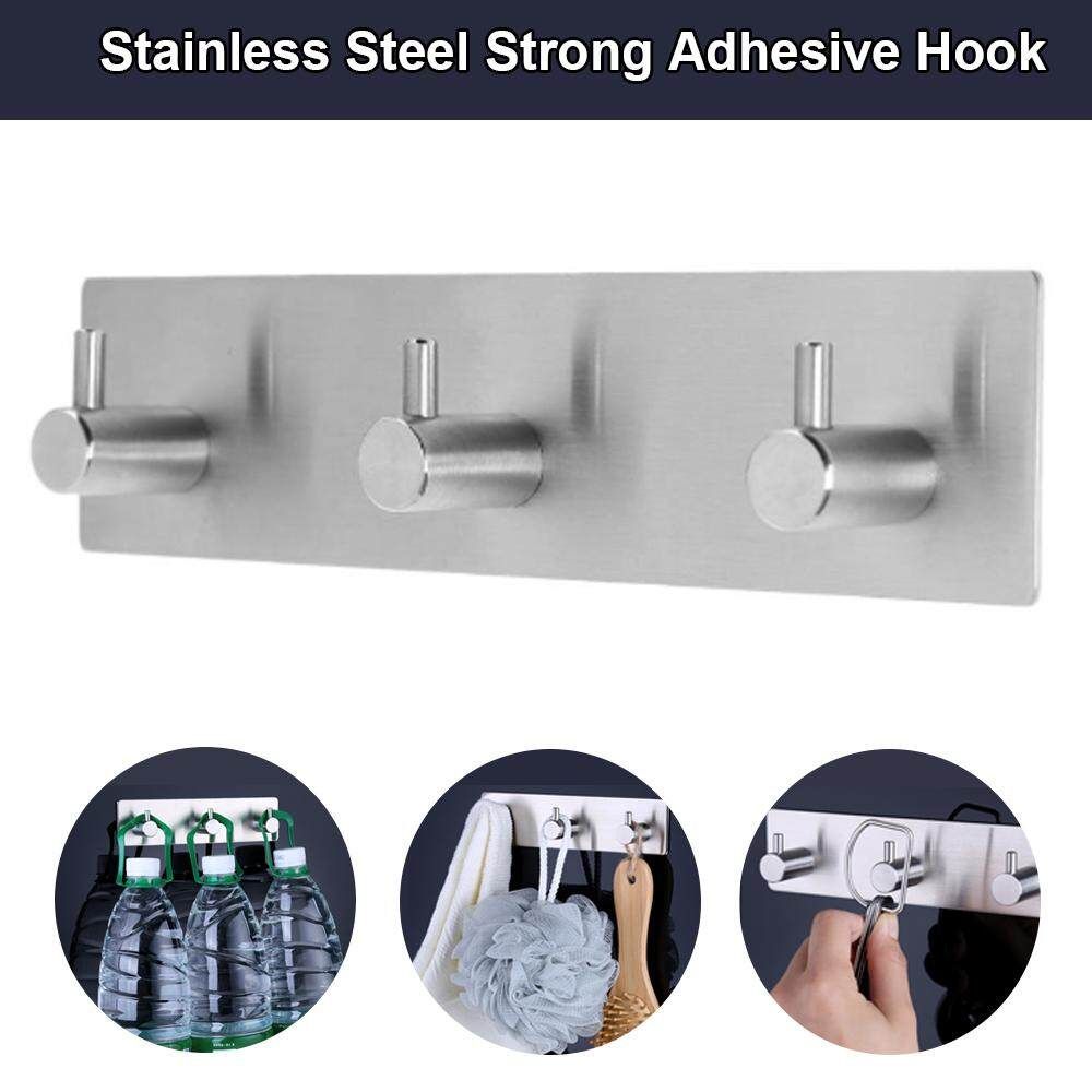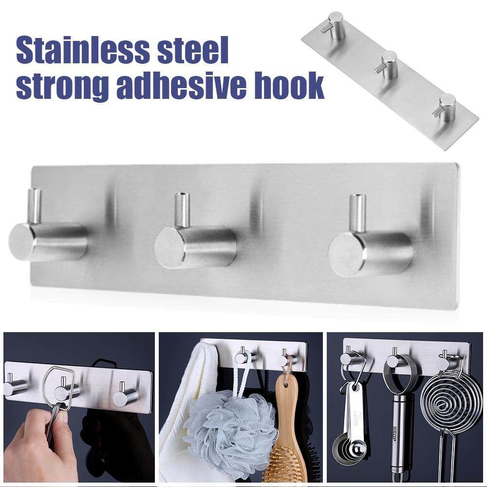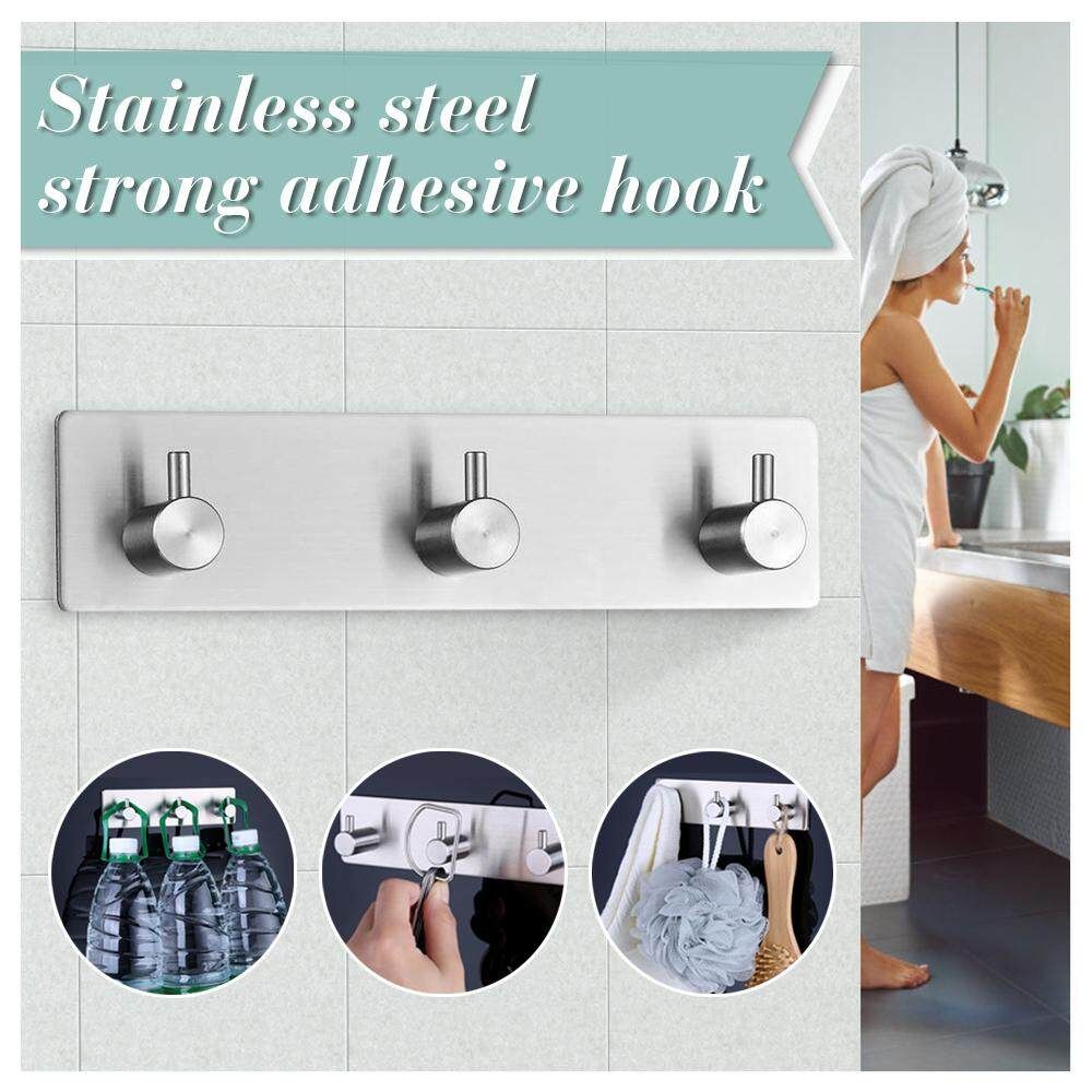 Hook Three Hook Stainless Steel Hook Free Punching No Trace Hook Strong Adhesive Hook FEATURE: 1. Easy to install: no need to punch holes, no tools or damaged walls, gently stick, leaving no traces. 2. Suitable for a variety of environments: suitable for wet environments such as bathrooms. Also suitable for bedrooms, kitchens, office closets, living rooms, bathrooms, offices, etc. Suitable for wood surfaces, stainless steel, metal surfaces, plastic surfaces, glass surfaces, ceramic tiles, etc. 3. Stainless steel wire drawing process:high quality 304 stainless steel, durable, anti-oxidation, no rust, not easy to corrode, smooth corners, fine workmanship. 4. Strongly maintained:Use thick stainless steel super-adhesive to avoid holes in the wall. When it is used for a long time, when it is wet or when hanging heavy things, the hook is not broken or broken. 5. Waterproof stainless steel hook:Made of waterproof 304 stainless steel, don't worry that the hook will fall off or rust after encountering water. 6. Non-slip design: Hanging items are more convenient, designed to hang on the wall with a variety of items such as wallets, coats, hats, handbags, umbrellas, towels or robes. SPECIFICATION: Product Category: Adhesive hook Material: Stainless steel Use scene: bathroom, bedroom, kitchen Product features: towels, bath balls, coats, etc. Installation method: Surface technology: wire drawing process Size: 18.8*5.2*4.2cm Gross weight: 230g PACKAGE INCLUDES: 1* Hook