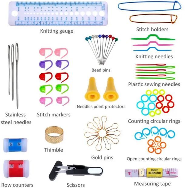 Right tools makes work faster and neat. This kit comprises of different tools used for hand knitting and machine knitting plus free storage bag.