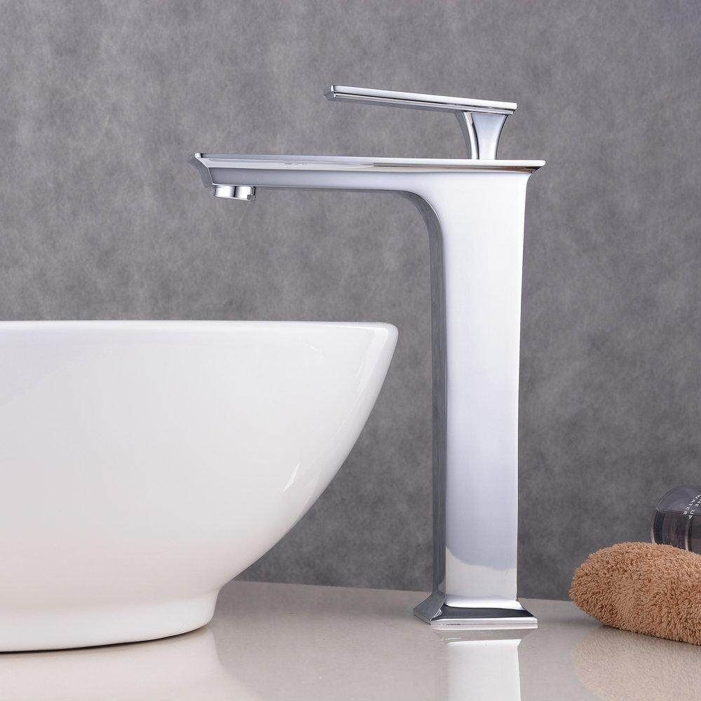 HOOMI ChromeModernBathroom BathFaucetCounter TopTallBasinMixer TapVesselSink SingleHandle