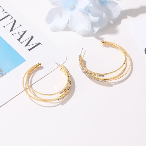 Buy Hoop Round Rhinestone Earring- 3 Layers- Gold. in Nigeria