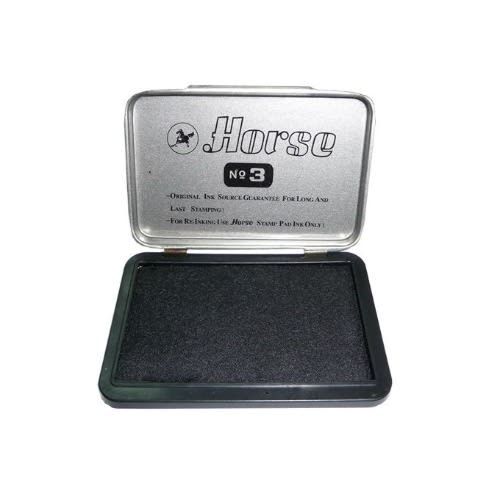 Stamp Pad Black Horse Comes in the sturdy metal casingReinkable felt pad absorbs and spreads ink effectivelyAbsorbs the ink effectively without any pressing forceAble to stamp on all kinds of paperRecommended for use with HORSE stamp ink padCertified by TISI No. 1677-2541Type : Coloured stamp padInk Colour : BlackNumber of Stamp Pads : 1 pad (one ink colour refillable)Poduct Size (Width x Length) : 7 & times; 11 cm./eachNumber of Items : 1 pcs.