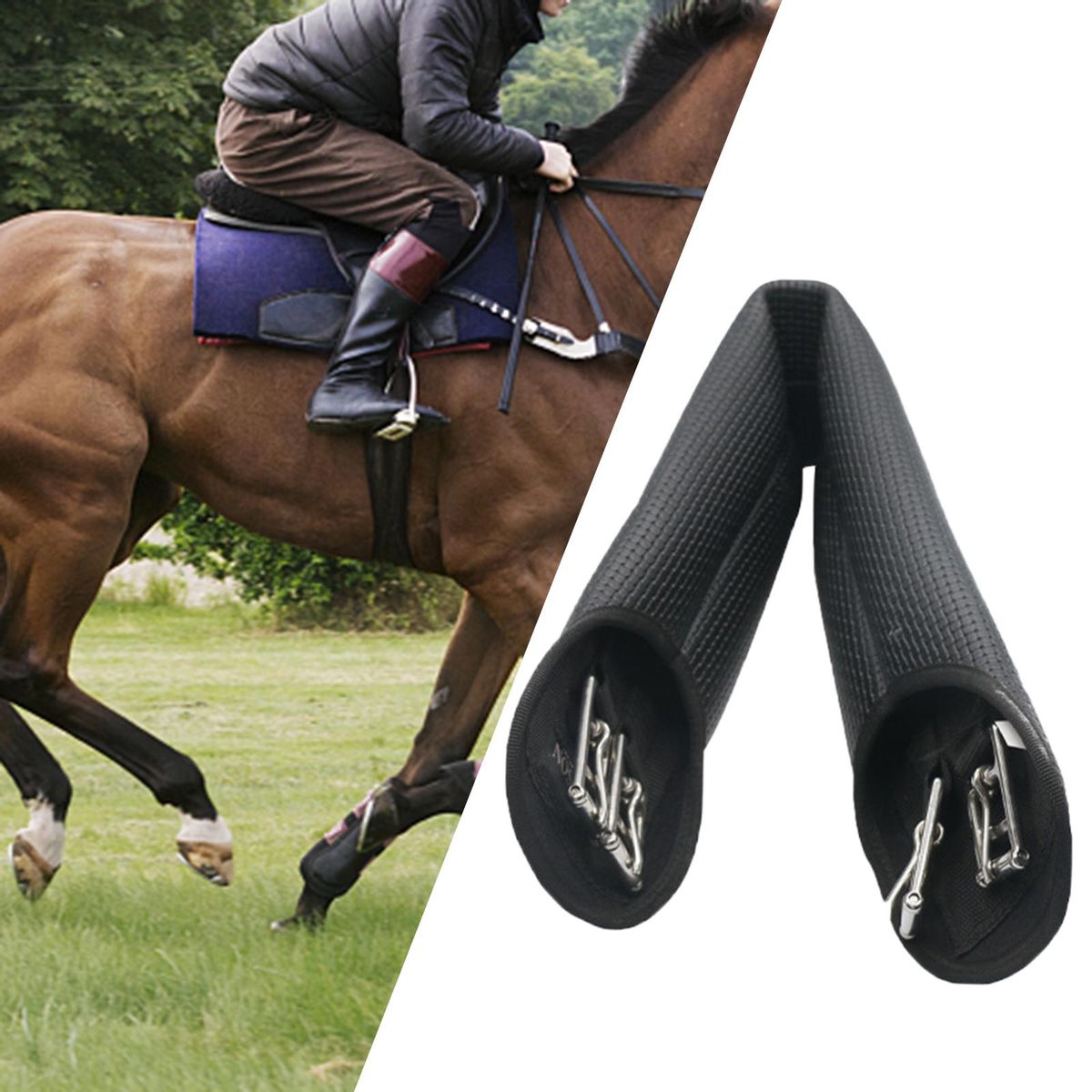 Artificial leather: Soft and easy to twist. The material is more breathable.Strong comfort: feel soft, elastic, with damping effect.Metal buckle: Both ends of the metal double buckle design, effectively tie the the belly of the horse, not easy to rust.Thickened edge design: portable and durable, prolong the service life.Purpose: Use for training horses.Equestrian accessories for equestrian training, performances, etc.