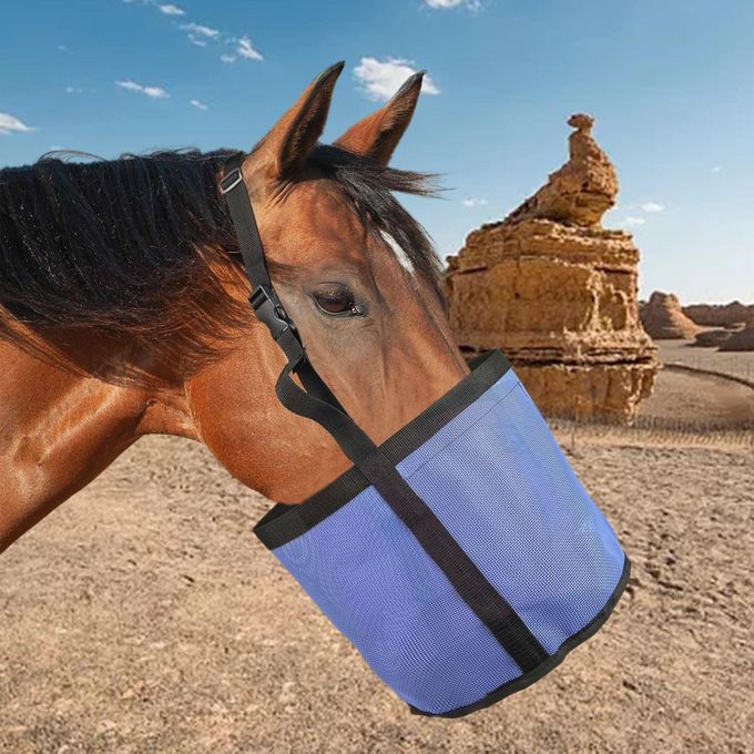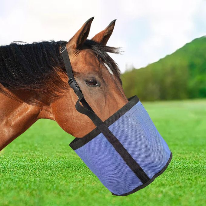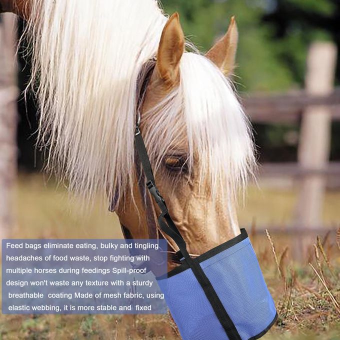 horse feed pouch;horse feed bag grain feeding slow feeders;Hay Bag holder storage hanging for horses;large mesh net Equestrian Feeding Supplies;grass straw Elastic adjustable horse mouth sleeve;pocket pouch outdoor equipment accessories