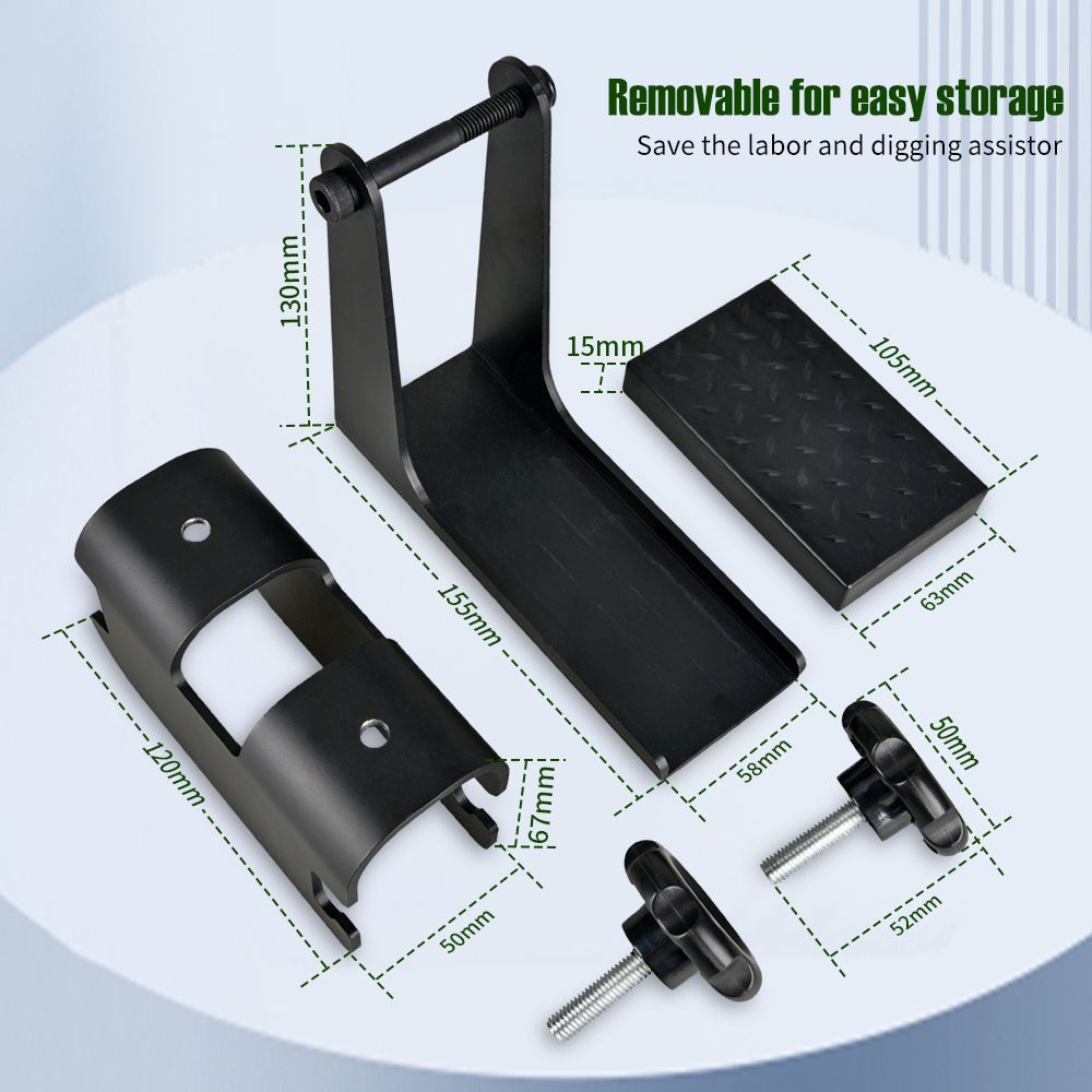 This digging assistor adopts thicken and solider material, high hardness, wear resiatance, more strength when used, with long durability. Screw fixed design for easy installation. Hand rotation nut fixed, diameter 45mm, it can be used with garden shovel, fork, spade,etc. Garden tools digging assistor, suitable for breaking the ground, loosening the soil and turning the ground, garden cultivation, collect crops, etc.