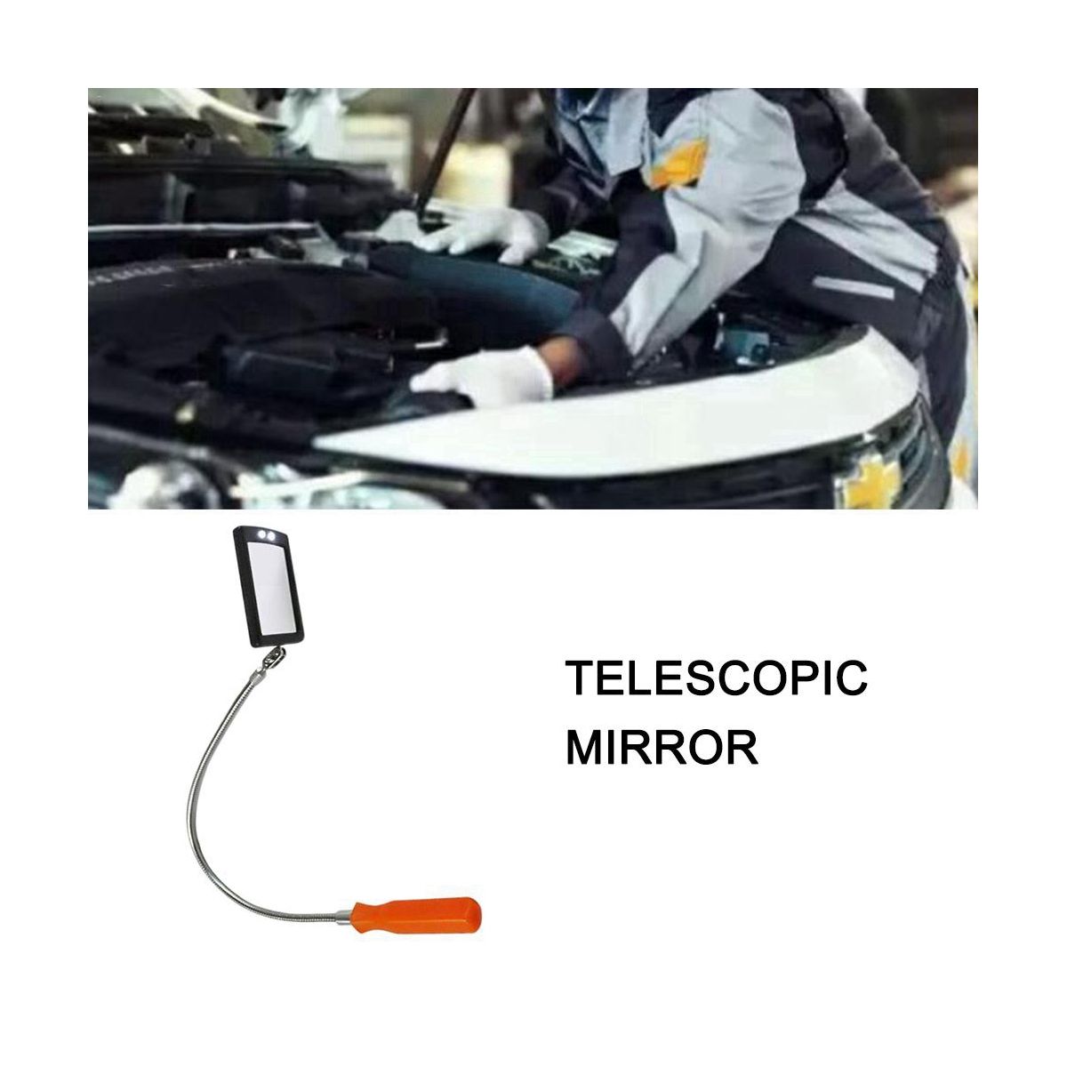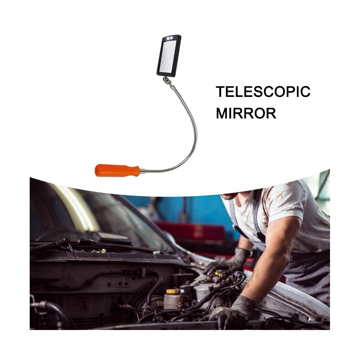 Product specification 60 cm long material adjustable hose single net weight 148 g flexible hose LED double lamp square detection mirror