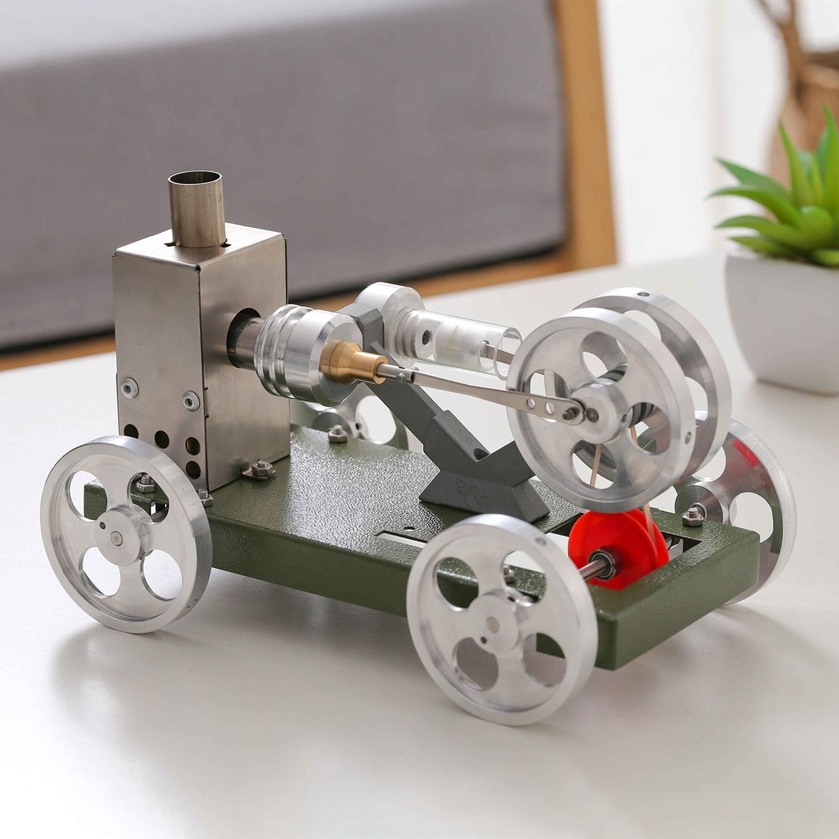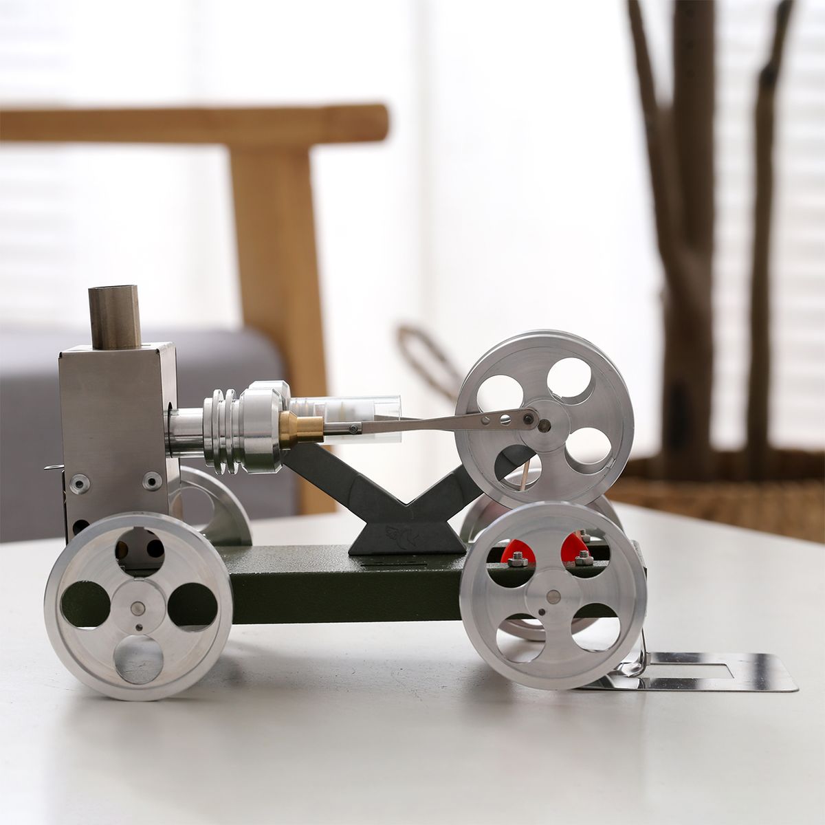 Easy operation- After assembly, put the car on the bracket first, fire the pure copper alcohol lamp, put it into the drawer, gently flip the flywheel until the engine runs automatically.