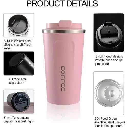 The Travel coffee mug with a smart temperature display , can show the exactly temperature for the liquid inside ,if >55'C ,It will show the real-time temperature with a red warming sign .if <55'C ,it will show the real-time with a green sign on it ,choose the temperature you like best ,avoid scalding ,smart temperature control coffe mug .
