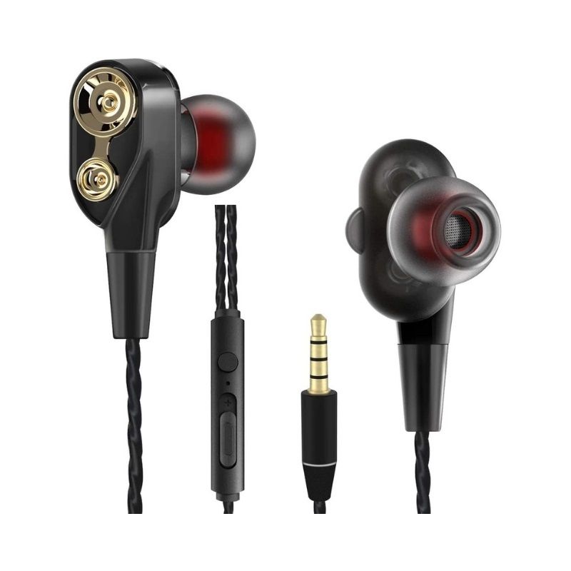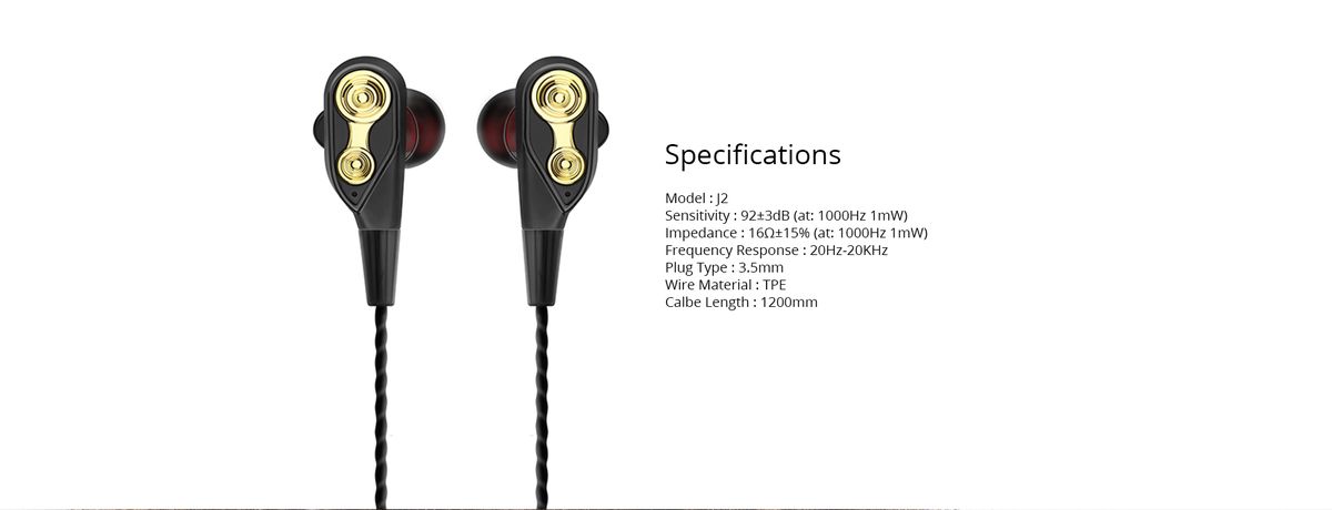 FEATURES:1. IMMERSIVE PERFORMANCE : Dual sound driver and quad speaker express the essence of music. The Bass performance is also powerful offering a chance for theatre-like experience.2. 45 degree angled in-ear design : The considerate design not only avoids frequent dropping, but also makes it comfortable for long time wearing.3. One-Button Remote : Pick up and hang up the phone call, play or pause the music, adjust the volume only by one button remote.4. Exquisite Metallic Texture : Adopt 1.2m TPE wire, strong and durable, less wire winding with glossy finish and metallic design.