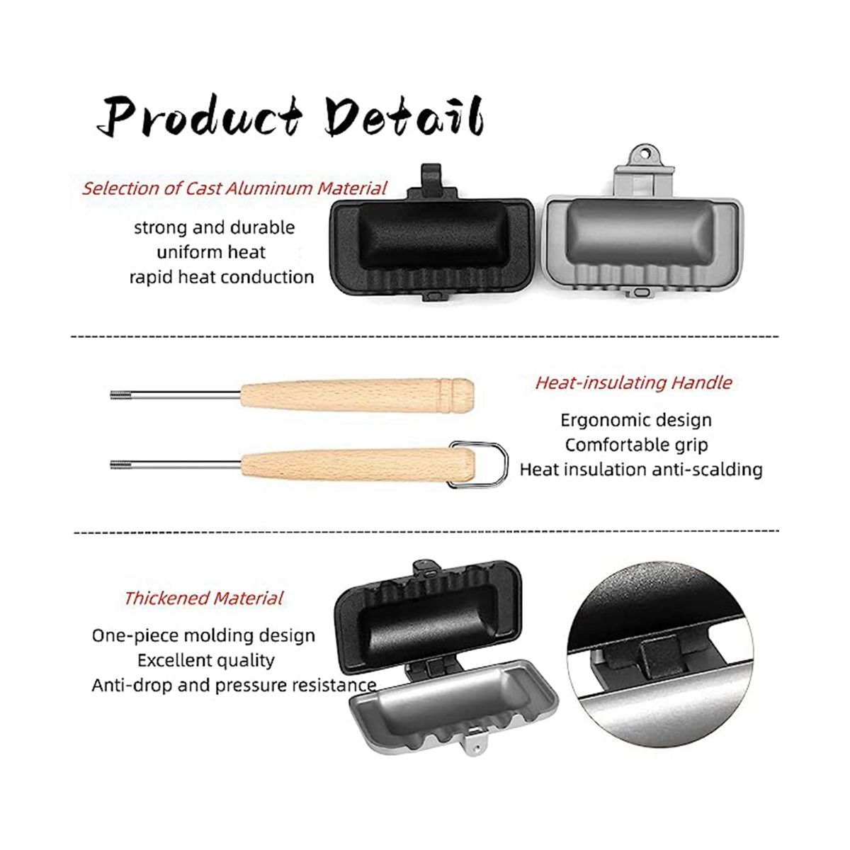 Easy to use: Two handles for locking cooking, a pie iron designed to prevent ingredients from falling off, and a unique edge that ensures a , which makes it easy to things that usually fall off kebabs. Simply grease the plate of this sandwich maker, place the bread, fill it with your favorite toppings, lock your hands, and bake on the stove with a two-tone design to prevent incorrect when grilling.